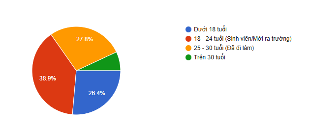 Dữ liệu cho thấy thế hệ trẻ Việt Nam đang có mức độ tiếp cận công nghệ rất cao. Cụ thể, 38.9% người tham gia khảo sát thuộc nhóm 18-24 tuổi (sinh viên và người mới đi làm), và 27.8% thuộc nhóm 25-30 tuổi.